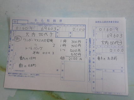 欲しい本・グッズ名と数、送料の合計金額を通信欄にお書き下さい。